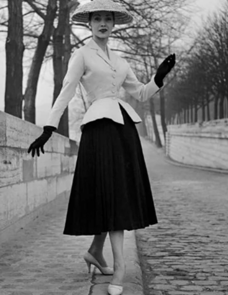 Após a Segunda Guerra Mundial, Dior trouxe um novo conceito de feminilidade, apostando em saias volumosas que terminavam entre o joelho e o tornozelo, marcando a cintura e criando um visual sofisticado. TIPO ASSIM!